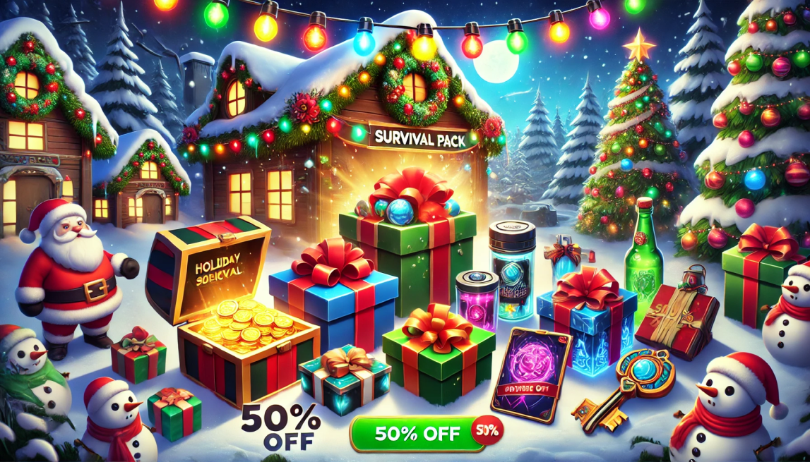 Gaming App: Introduce a "Holiday Survival Pack" with a mix of premium currency, rare items, and exclusive skins, all at a bundled discount.