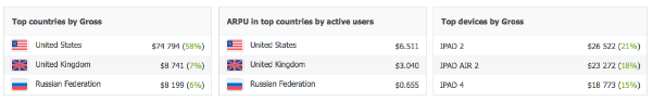 The cuts by country and device. We saw that our customers tend to build reports in these cuts and let this knowledge to our advantage. In fact, most commonly developers want to know the structure of the revenue or of the audience by countries or by platforms. There is another useful cut by the traffic sources, but simply not everyone has such a cut.