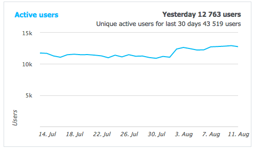 30-days period of analysis. We chose between 7, 14 and 30 days and sticked to the 30 days, because that's how you can see both the actual dynamics of the project, and the seasonal behavior of the users. For example, if there is a rise in revenue every Friday and Saturday in your project (which is quite typical for mobile games), then for a period of 30 days, you may sure identify it, while 7 or 14 days is not enough to do this. So for each metric, you may follow how it behaved over the past 30 days, keep track of its dynamics, trends and seasonality.