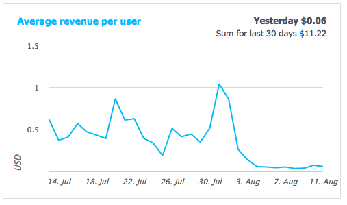 - ARPU (Average Revenue Per User) - Average revenue per active user for that day; It is calculated as Gross / Active Users;