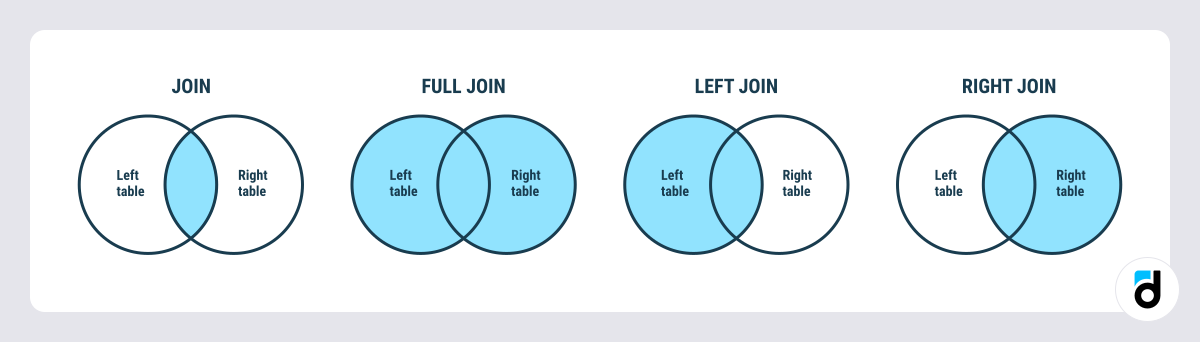 Join is a basic database tool that is used to link tables based on a specific set of fields. This operation always uses two tables, usually called left (in from) and right (in join), and a join condition.