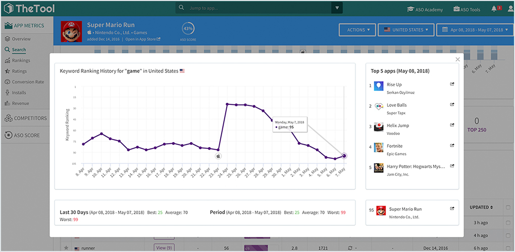 Before starting with your ASO plan, it is very important that you carry out a Keyword Research to find out the current performance of your keywords if your game is already launched, or investigate your potential Keywords performance — use an ASO tool to do so.