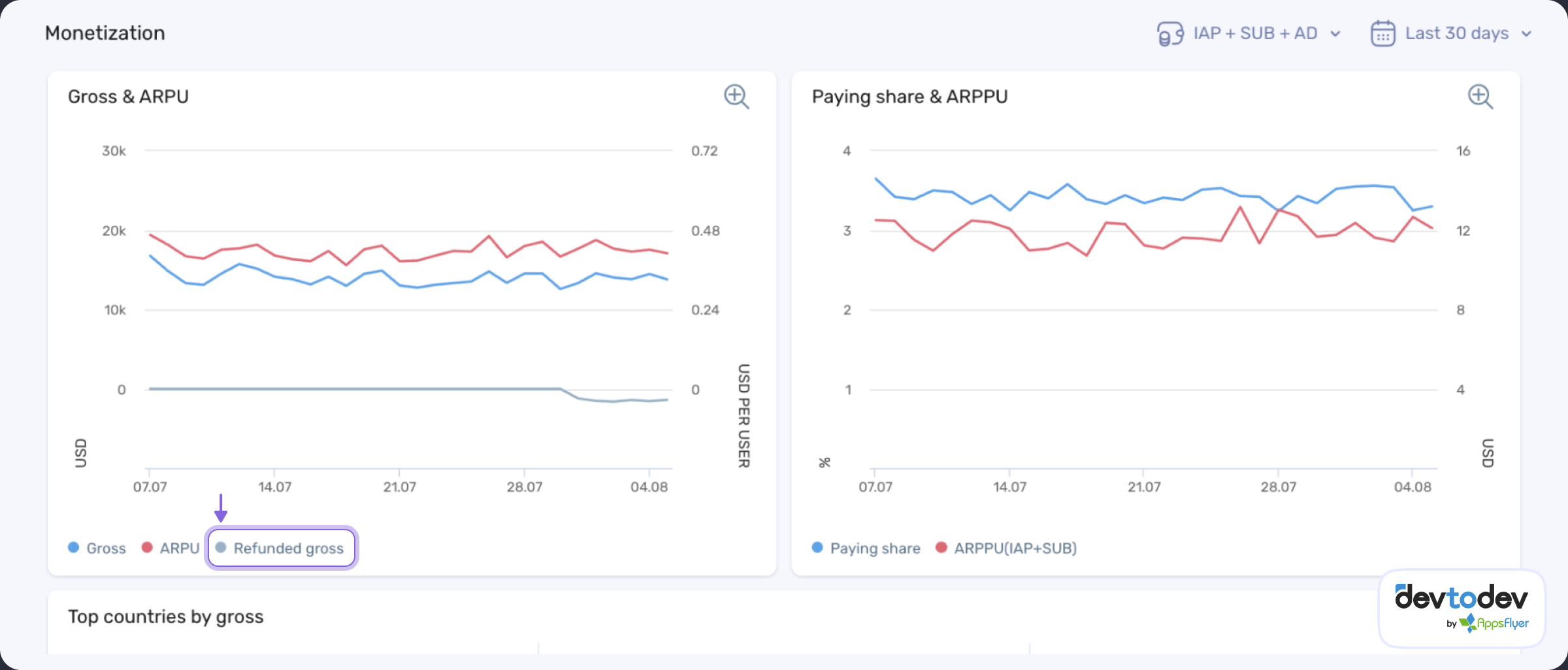 - New metric in Monetization dashboard: Refunded gross in the Gross & ARPU widget